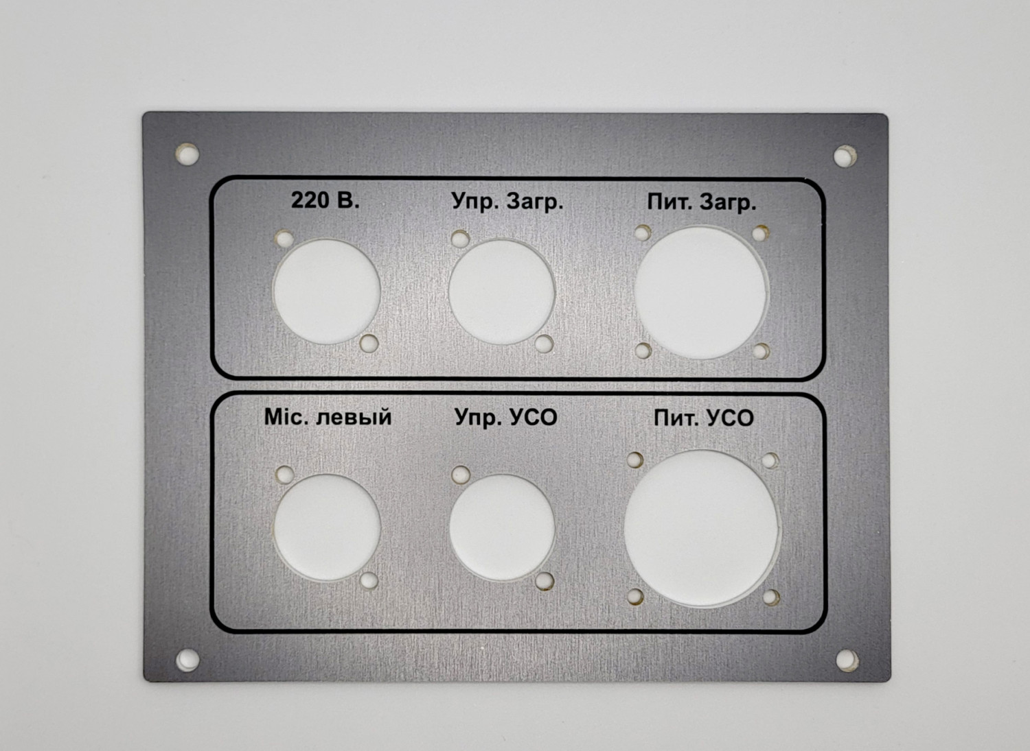 В основном для производства панелей приборов используется анодированный алюминий с цифровой печатью и последующей фрезеровкой, но, в зависимости от технологических особенностей использования и требований заказчика, могут быть подобраны другие материалы.